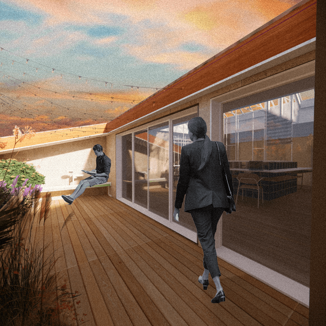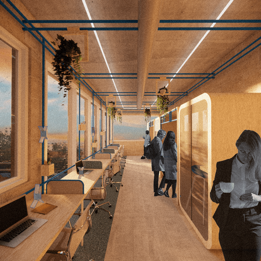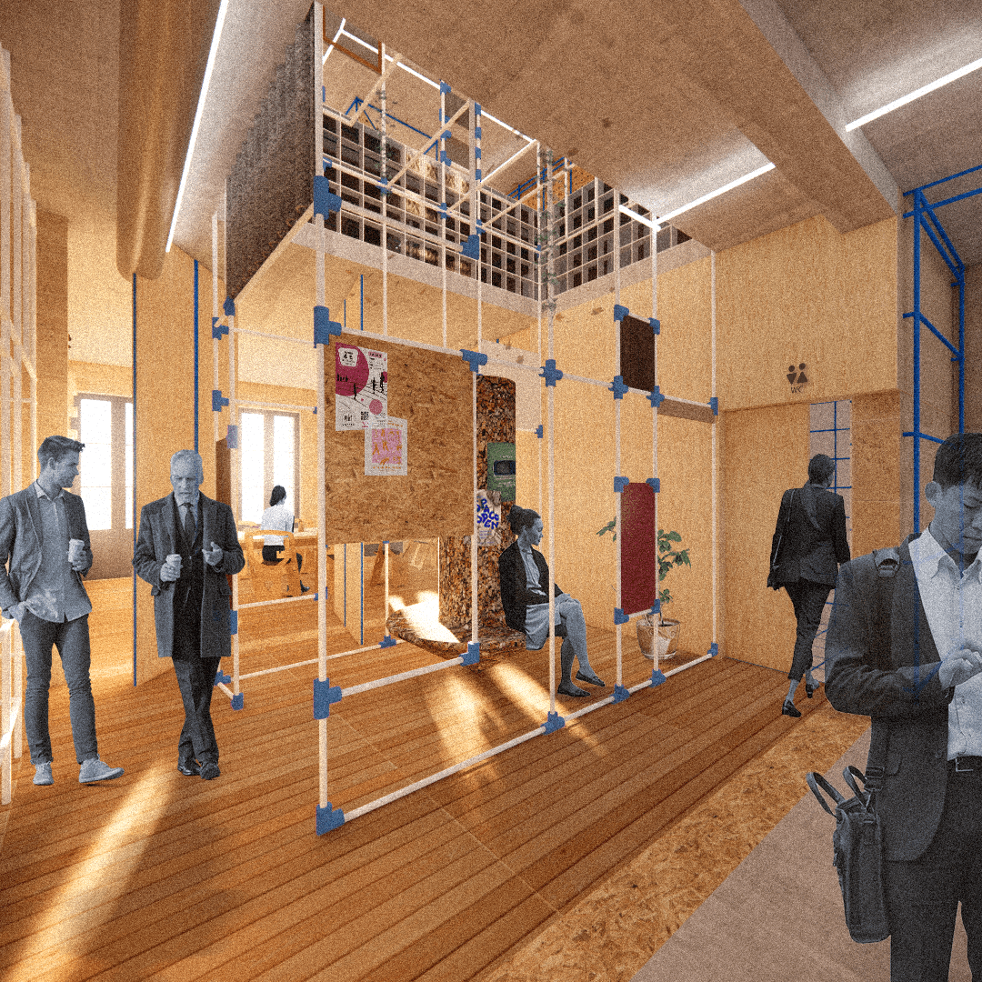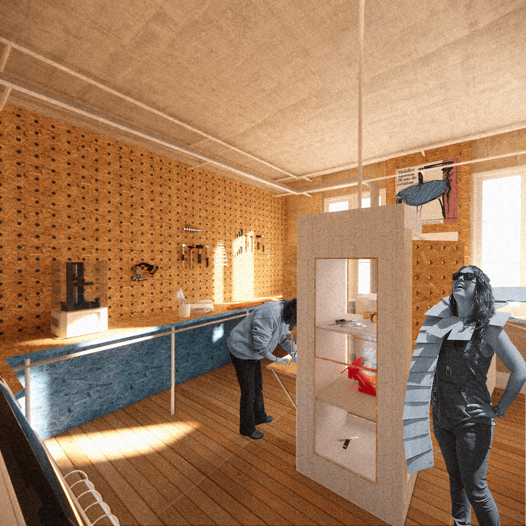 Le but de cette rénovation est de transformer un batiment d’habitation en un tiers-lieu coworking, sans en perdre l’identité, en exploitant sa singularité dans une démarche d’éco conception et de réemploi.
