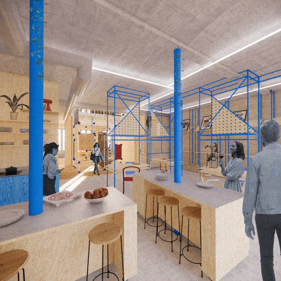 L’idée d’un chantier perpetuel, dont les échafaudages créeraient la signalétique, le pattern, le langage commun aux utilisateurs vient donc se heurter au besoin d’un travail sur la verticalité.